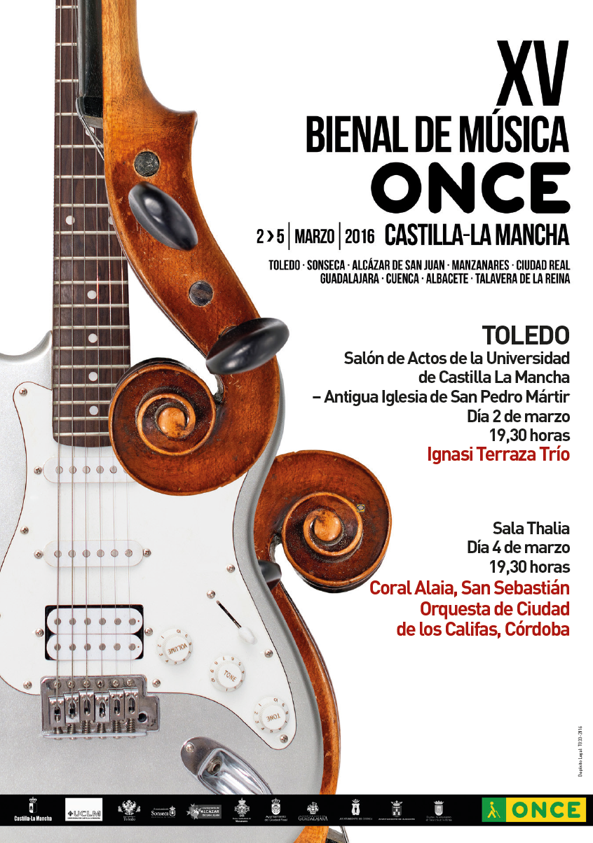 Del 2 al 5 de marzo, tendrá lugar en nueve ciudades de Castilla-La Mancha, la XV Edición de la Bienal de Música de la ONCE. Un total de diez conciertos, que contarán con la participación de cerca de doscientos músicos, la mayoría de ellos afiliados a nuestra institución., que llenarán los más importantes espacios escénicos de arte, creatividad y hermosas melodías, que abarcan desde el jazz, al Renacimiento, pasando por el pop, la música sefardí, el rock de vanguardia o la música coral.